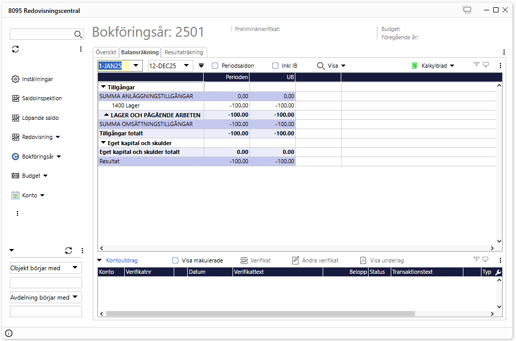 Preliminärverifikat kan bokas för t ex bokslutssimulering, påbörjade