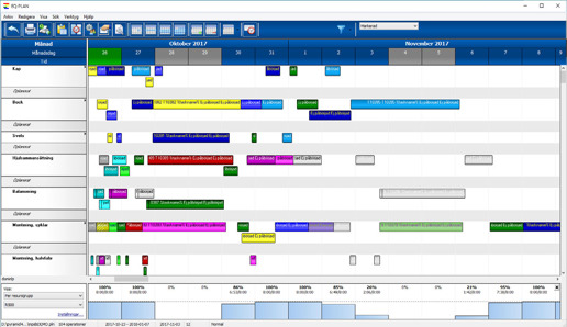 Grafisk Planering är ett verktyg som grafiskt visar företagets produktionsflöde. Modulen bildar samtidigt ett effektivt skyddsnät om det skulle uppstå en produktionsstörning. Snabbt och med bibehållen överblick kan du organisera om produktionen.