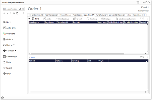 mellan Pyramid Business Studio och TA-systemet. Du kan se Uppdragsid, sändnings-id, produkt samt vilken status uppdraget/sändningen just nu har eller söka efter en specifik transportsändning.