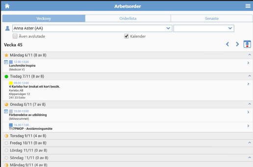 Med mobil arbetsorder får du översikt över bokningsläget. Du ser arbetsgruppens kalendrar och kan enkelt boka in rätt person för rätt uppdrag.