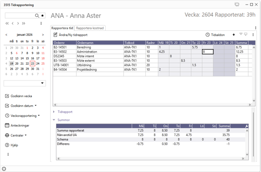 <- Moduler och paket | Företagspaket | Tilläggsmoduler | Tidrapportering